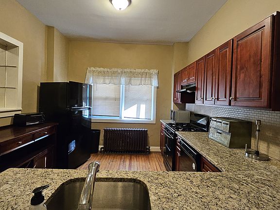 MOVE IN READY- 1) Very spacious 5 bedrooms 1.5 bath. 2) Gas efficient boiler so saves on heating bill 3) Brick home so cooler in summer and uses less electricity to cool down house 4) over 2,300 square feet of living space 5) updated kitchen with granite counter tops, black appliances, dishwasher, breakfast bar 6) hardwood floor 7) high ceiling 8) laundry room off of kitchen 9) half bath off of kitchen 10) covered front porch and covered rear deck 11) parking pad in rear for up to 3 cars 12) walk out basement with high ceilings 11) yard with storage shed 10) Close to Zest, the Banana Factory, The Nest, restaurants, cafes, CVS, McDonalds 12 month lease duration No smoking 2 Parking Spot No Pets allowed Tenants are responsible for maintenance of the building, paying for their usage of utilities (Gas, Electricity, heat and water).