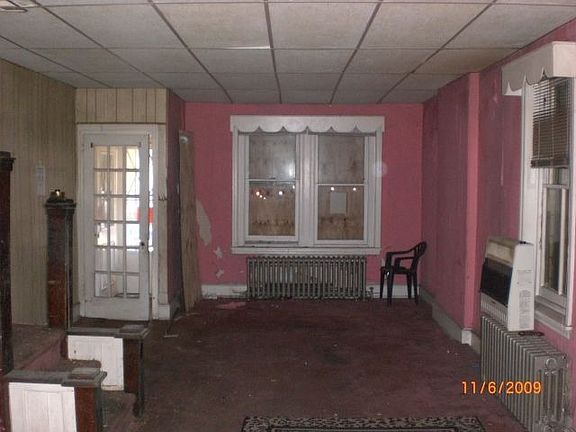 Exterior Features: Red brick town house style home, covered front porch with a cement slab in fair condition. Home has fair curb appeal; Roof is a mix of asphalt shingle and flat roof. There are leaks present inside the home, not only form roof damage but from plumbing issues as well. The home has a concrete slab foundation with no signs of shifting and or gaps. There is a wooden deck in the rear of the home that??s in fair condition. The front yard is small and the back is small and split or shared by the neighbor. There is no driveway or alley parking; no garage is on the lot either. Interior Features: Living room is large and has pink carpet in poor condition, pink walls and white trim. Room has two space heaters that appear to be in working order. The dining room is carpeted and has light pink walls and white trim, acoustic ceilings and ceiling lamp. The dining room ceiling has some ceiling water damage that will need repair. The kitchen has linoleum floors and has a space heater, cabinets and a sink. There are three bedrooms all of similar size, the first has two large windows and blue walls and white trim; space heater is in the room as well. The second bedroom has white walls, trim, ceiling fan and space heater. The third bedroom has white walls and trim as well as a space heater; all rooms are in good condition. The bathroom is in fair condition, vinyl floors, toilet, stand up shower and sink. A furnace and a hot water tank were found on site. Mechanics: Furnace, Hot Water Tank