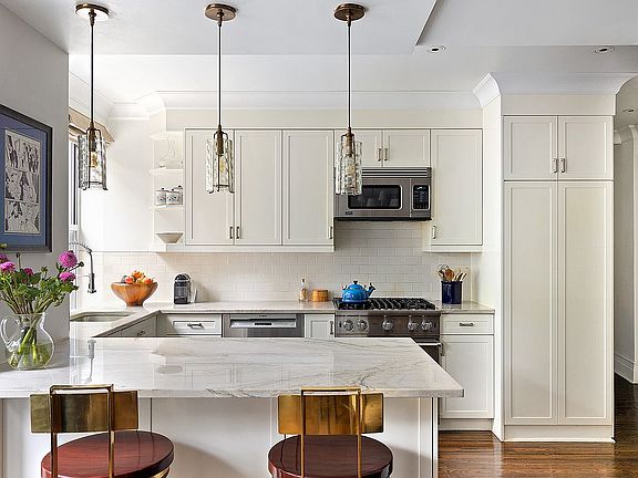 Welcome to an exquisite apartment at 220 W 93rd Street, where luxury meets modern living in a sophisticated pre-war condominium. This fully renovated 1,728 sq ft residence boasts 2 spacious bedrooms and 2 luxurious bathrooms. Step into the expansive living area and be greeted by high, coffered ceilings, custom built ins, and beautiful hardwood floors. Oversized windows with custom treatments allow for plenty of natural sunlight, creating a bright and inviting ambiance. The library/den offers a tranquil space for reading or working from home. The chef's kitchen is a culinary dream, featuring stainless steel appliances including a Viking stove and SubZero refrigerator, a wine cooler, custom cabinetry, and marble kitchen countertops. The open kitchen design includes an island, and a windowed layout, perfect for both casual dining and entertaining. The primary suite is a private retreat with an ensuite marble bathroom featuring a glass shower, linen closet, and mosaic tile floor. The primary bedroom is outfitted with a custom closet, perfect for your designer shoe collection! A large second bedroom faces east and is next to a marble bathroom with a deep soaking tub. This residence also includes central AC and an abundance of closets providing ample storage, while the in-unit washer/dryer adds convenience. The building offers full-time doorman service, an elevator, and additional amenities such as a live in super, bike room, private storage for rent, and building laundry facilities. Experience the epitome of urban living in this meticulously designed condo! Conveniently located near the 2, 3 trains at 96th Street, cross town bus, Equinox health club, Whole Foods, Trader Joe's, and other popular retail destinations and fine restaurants.