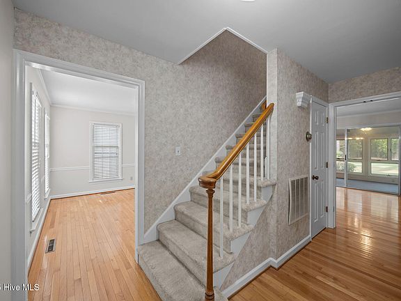 Charming Cape Cod in Sought-After Country Club Estates: Welcome to timeless elegance in this classic brick Cape Cod, ideally nestled in the heart of Country Club Estates, just a short stroll from the Washington Yacht & Country Club, 18-hole golf course, marina, & the tranquil waters of Broad Creek & the Pamlico River. From the moment you arrive, you'll be captivated by the home's traditional curb appeal, mature landscaping, & the warmth of its classic design. Step through the welcoming front foyer & into a spacious living room, where glowing hardwood floors & a gas-log fireplace create an inviting space to unwind or entertain. A formal dining room offers flexibility for hosting elegant dinners or serving as a home office, while the adjacent kitchen boasts its own informal dining area, also graced w/ rich wood floors & natural light—perfect for everyday living. The thoughtful layout includes a convenient powder room tucked between the kitchen & the mudroom, which connects to the attached 2-car garage for easy access & storage.The main-level primary suite is a true retreat, offering generous space & an ensuite bath for privacy & comfort. Upstairs, you'll find 2 large BRs, a full bath, & a walk-in attic—ideal for storage or future expansion.One of the home's most beloved features is the enclosed sunroom—a bright, peaceful haven to enjoy year-round views of the serene backyard. Though not included in the heated square footage, it offers a seamless connection to nature & the changing seasons.Set on a spacious lot w/ mature trees & landscaping, this home offers room to relax, play, or garden in your own private oasis. And w/ no flood zone worries, you'll enjoy peace of mind in every season. Don't miss this rare opportunity to own a beautiful, well-kept home in one of Washington's most desirable neighborhoods—where lifestyle, location, & classic charm come together effortlessly. Schedule your private tour today & experience the magic of Country Club Estates living.