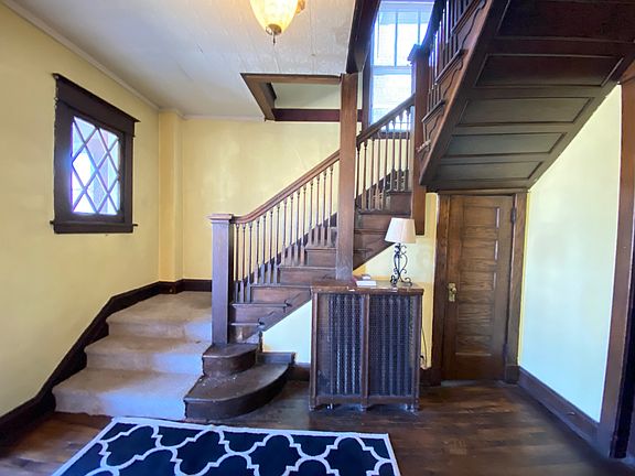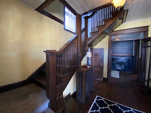 Wait till you see the inside! This charming home has loads of character with some TLC would make a gorgeous home. Also, could be great investment to make as a bed and breakfast or Air B&B with Carle's new 70 million dollar project with new plans for riverfront shops only 2 blocks from this 4DB, 2.5 BA brick home. Home boasts high ceilings throughout. Main floor has living room, dining room, study with a fireplace, kitchen, laundry room, 1/2 BA, enclosed back porch, enclosed front porch. Potential additional space with large attic and large basement. Built in 1907, this house has original features such as a built-in bookcase in the cozy study and original woodwork. A bay window in the dining room. Washer/Dryer included. Two staircases to the second floor. An office/workshop in the basement. New roof in 2013. Detached 2 car garage