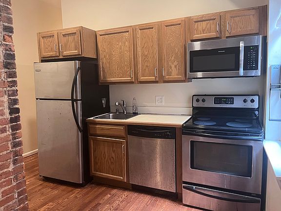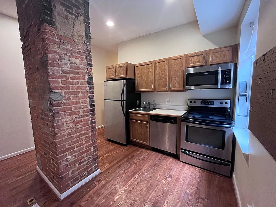 Nestled within this welcoming neighborhood of Mount Vernon, you'll discover esteemed institutions like the Walters Art Museum and the exquisite Peabody Library, embraced by centuries-old architectural marvels encircling the iconic Washington Monument. Your culinary cravings will be fulfilled by a diverse array of dining options, and the nightlife caters to all tastes, with trendy cocktail bars, cozy dive bars, and vibrant venues hosting dance music and live bands. Step into this inviting, sunlit apartment, where modern charm takes center stage with stainless steel appliances a dishwasher, refrigerator, stove/oven, and microwave. The convenience of a stacked washer/dryer adds to its appeal. In the living room, the fusion of a faux fireplace and exposed brick crafts a truly welcoming atmosphere. Enhancing your comfort, the apartment boasts a recently installed HVAC system, a separate hot water tank, and an upgraded electrical system featuring 120 AMP panels. Easy Access: 11-minute bike ride to Inner Harbor 20-minute walk to Penn Station-Baltimore 22-minute drive to BWI Airport Alternatively, you can conveniently access the Light Rail Link at the nearby Mt. Vernon (Centre Street) station, around the corner on N. Howard Street, which connects you directly to Inner Harbor, Penn Station-Baltimore, and BWI Airport. Tenant is responsible for all utilities, and a one-year lease with a one-month deposit is required. Renter responsible for all utilities. One year lease. One month deposit required