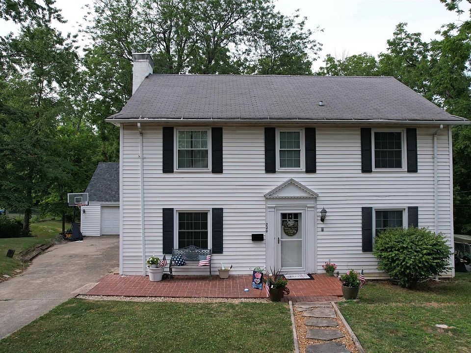 This charming 1940's Colonial-style home blends classic elegance with modern functionality. Located in town, the home features a beautiful scenic backyard, providing a tranquil retreat. The home traditionally features three spacious bedrooms, but boasts added bonus rooms and converted spaces in both the attic and basement, providing ample opportunity for additional bedrooms, office spaces, or recreational areas. Each room retains the home's original charm while offering the versatility to meet your modern needs. The first floor welcomes you with a formal dining room, ideal for family gatherings and special occasions. The large family room, featuring a cozy wood-burning fireplace, serves as the heart of the home, offering a warm and inviting space for relaxation and entertainment. Upstairs, you'll find a spacious master suite, providing a private haven complete with ample closet space and room for relaxation. Additional bedrooms are also located on this level, ensuring comfortable accommodations for family and guests. The home also includes a detached garage, offering extra storage space for vehicles, tools, and recreational equipment, keeping your main living areas uncluttered and organized. With its blend of historical charm and practical modern updates, this Colonial-style home is a true gem, offering versatile living spaces in a picturesque setting. Whether you're seeking extra bedrooms, office space, or a serene backyard escape, this home has it all.