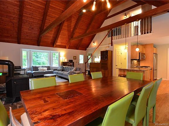Please visit this stunning Woodstock, CT, lakefront home which includes an additional waterfront cabana The home is located on almost 4 private acres with 200' of prime waterfront shoreline. The home features a stunning cathedral ceiling living/dining room with a stone backed wood-stove, hardwood floors, beamed ceilings and beautiful bay windows. The main home has three bedrooms, including two elegant master bedroom suites The updated kitchen has hickory cabinets, new propane cooktop, new Thermador stove and dishwasher, granite and windows with great views to the lake. The lower level boasts a wonderful finished flexible use space and full bath. You will love the unique waterfront cabana with glassed walls, huge deck, high ceilings, composting toilet, sleeping quarters and a small food preparation area. Other highlights include central AC, a 3++ car garage, 10x42 porch with water views, dock and a wonderful storage barn. The upper lot is level and there is a stone pathway to the waterfront cabana house and deck. The large deck at the cabana (14x32 provides gorgeous lake views This is the quintessential lakefront home Quasset Lake is over 88 acres in size. Enjoy swimming, fishing, boating, and water skiing directly from your year-round residence. Be on vacation every day Convenient to schools and shopping. Please visit this dramatic waterfront property today.