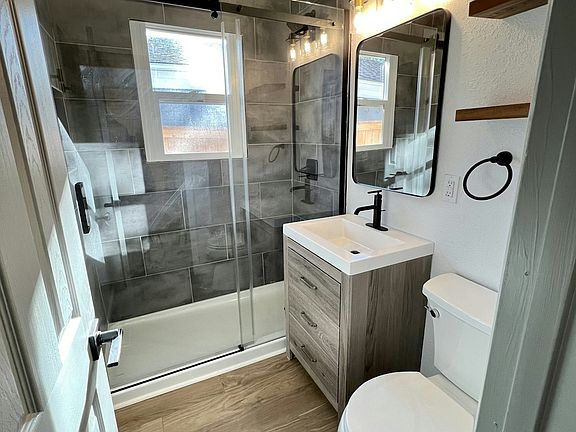 Welcome home to this beautifully renovated ranch style home nestled in the Ivy Wild neighborhood southwest of downtown Colorado Springs. Minutes from the city, Bear Creek Park, Creekside Walk, and D12 schools. This is the front unit of the Duplex. Extensively renovated: new kitchen -- dove gray shaker cabinets, all new appliances including 36" side by side fridge, granite countertops, matte black subway tile backsplash. New walnut luxury vinyl plank flooring throughout. All new plumbing and electrical with LED lighting and modern fixtures. Stacked front load Samsung washer and dryer conveniently located outside 2 bedrooms. Brand new full bathroom with large format floor to ceiling tile and barn door style sliding glass shower door -- floating shelves for additional storage or decor space. Enjoy a freshly landscaped backyard space with privacy fencing surrounding the area. Fully fenced with gate for pets and small children. New concrete steps lead you up to a grass yard with fence mounted solar LED landscape lighting. The enclosed front stamped concrete patio serves as a second space to spend time and relax. Front gravel parking area can comfortably accommodate 2 large vehicles.