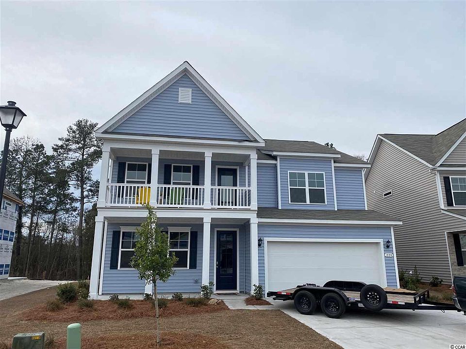 This popular plan brings functionality and style together! Incredible curb appeal is an understatement given the stacked front porches and tall entry door with glass. Once inside, wide plank laminate wood flooring creates an inviting space and numerous windows bring in fantastic natural light. Off the entry is a spacious flex room that would make a great home office or formal dining room. The large gourmet kitchen boasts gray painted cabinetry, granite countertops, an oversized island, stainless Whirlpool appliances, a walk-in pantry, and a gorgeous Butler's pantry. Sliding glass doors off the dining area lead to the rear screen porch! Spacious bedroom and full bathroom on the first floor is perfect for guests. Upstairs you will find the grand primary bedroom suite with a cozy sitting room, huge walk-in closet, and en suite bath with large separate vanities, linen closet, and walk-in shower! This home is located in a brand new natural gas community in Carolina Forest! The Parks of Carolina Forest is a picturesque setting of ponds, an amazing amenity center, and park of the majestic "Ten Oaks" with a walking trail to get to the Carolina Forest library. *Photos and virtual tour are of a similar Harbor Oak floorplan. (Home and community information, including pricing, included features, terms, availability and amenities, are subject to change prior to sale at any time without notice or obligation. Square footages are approximate. Pictures, photographs, colors, features, and sizes are for illustration purposes only and will vary from the homes as built. Equal housing opportunity builder.)