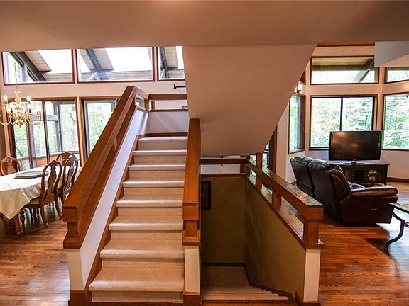 Feel like you are in a mountain retreat while enjoying the convenience of living within the Clemson city limits! This spacious and open mid-century-modern home rests on almost 2 wooded acres with mountain laurel and rhododendron that are stunning when in bloom. The understated, natural, cypress-sided exterior belies what awaits inside. After passing through the stained glass door you are greeted by soaring, open-beam ceilings and a panoramic view of the forest from the open living and dining areas. Step out into the beautiful screened porch and listen to the creek babble as you watch the deer play in the back yard, read a book, or spend time with friends and family. There are 4 total bedrooms with the master on the main level featuring an en suite with walk-in, dual-head, tile shower. The kitchen was updated a couple of years ago with lovely granite counters and maple cabinets. The layout is not only attractive, but extremely functional and efficient. The three bedrooms upstairs have another full bath complete with a 2-story laundry chute. Downstairs there is another full bath as well as a study that could be used as a 5th bedroom. There is also a recreation room with custom built-ins and fireplace with natural stone surround that is perfect for family movie night. The home's design is excellent for entertaining and there is plenty of parking with a detached 2-car garage and circular driveway. Native natural stonework isn't limited to the fireplaces, but also surrounds the charming courtyard which is overlooked by the breakfast area in the kitchen. The large deck is perfect for cookouts with a view! Home is on city water and city sewer and zoned for Clemson Elementary, RC Edwards Middle and Daniel High School. This is an amazing neighborhood full of invested and yet casual owners. This home showcases all 4 seasons elegantly. And for those Clemson fans, on a clear day you can hear the cannons from Death Valley on the screen porch! Owners are both licensed SC real estate salespersons.
