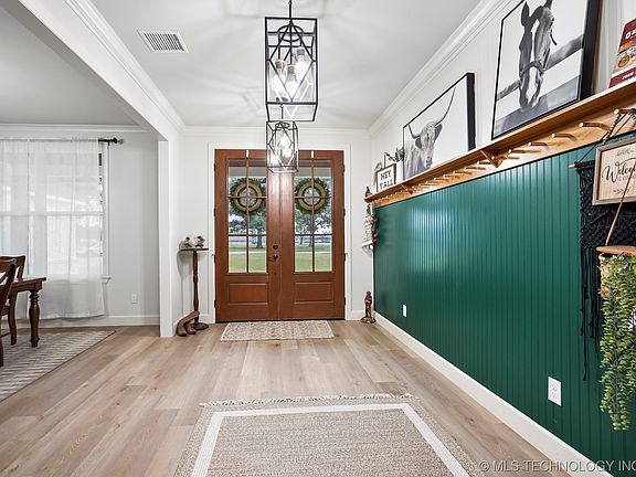Gorgeous custom almost new home with lovely formal dining w/lovely built-in hutch next to the designer kitchen featuring abundant cabinets, large center island & walk-in pantry open to the great room w/large stone fireplace. The upstairs area features an office with beautiful built in cabinets & shelving, 2nd bedroom w/private bath & walk in closet, 2 more bedrooms that share a pullman bath & walk in closets, and a bonus room that could be 2nd living. There is a huge finished room with extra large closet over the garage that could be guest quarters or office area. The covered back patio includes a 2nd fireplace, hot tub and plenty of space for entertaining. This home is ideally located in desirable Adair school district on the edge of town with country living. See to appreciate this spectacular home.