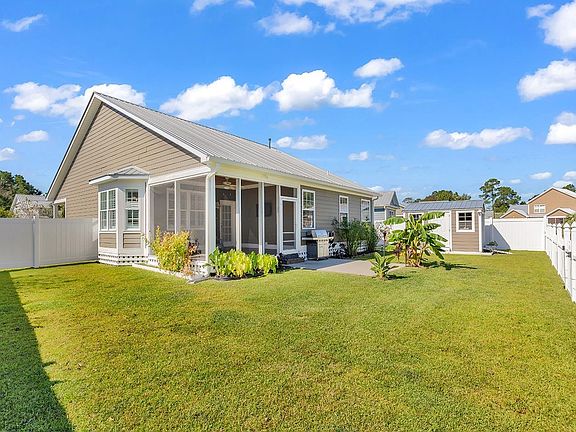 This beautiful home is located in the quiet, natural gas community of Oak Hampton. The "Sea Grass" floor plan home was designed for "easy salt live" living. With 3 bedrooms and 2 full baths, large screened in back patio, and a metal roof, this home is a show stopper. Once you enter through the front door, you will notice the beautiful birch laminate floors, tall ceilings, that open into the dining and bright kitchen. The kitchen features stainless steel appliances, white 42" cabinets with crown molding, granite countertops, an under-mount sink, with recessed lighting to add more brightness to the room. Through the master bedroom you will notice the custom built bathroom with granite vanity and stunning custom tile shower. The laundry room is located upon the entrance from the garage. All the walls are finished with bullnose edging.There is plenty of storage space above the garage with a built in ladder. This home has been well maintained, and the seller has spared no expense when it came to customizing what they loved most about the home. Several additions to the backyard, with putting green, a customized shed with matches the home and private white vinyl fencing along the side of the property and a white vinyl picket fence overlooking the large pond which is stocked with bass to enjoy fishing. The home is minutes to the popular Marsh Walk and seafood capital of South Carolina and where all the popular restaurants and activities are. A quick drive to the famous Brookgreen Gardens, Huntington Beach, Garden City Beach and all the main Golf Courses.