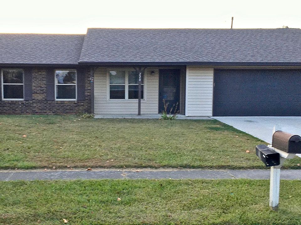 Nice 3br 2ba ranch with large 2-car garage and big driveway. Also a storage shed, and large rear deck. Freshly painted. Includes refrigerator, stove, dishwasher. 1 small dog or cat is $50/mo extra. Tenant pays all utilities.
