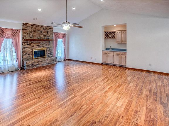 This expansive, custom built ranch-style home with full brick has 3-bedrooms, 4-bathrooms and a full basement. The layout has spacious rooms with many custom features. There is a wet bar, gas fireplace, plastered walls and walk-in closets in all bedrooms. The large eat-in kitchen boasts a large breakfast bar and custom cabinets. Updates include tankless water heater, back up sump pump, new laminate, and carpet in 2022. The home benefits from a large level lot with a shed, large covered patio, and plenty of nice landscaping. This prime location is conveniently located near shopping, restaurants and is in the Wolf Branch school district. Home has PASSED CITY OCCUPANCY.