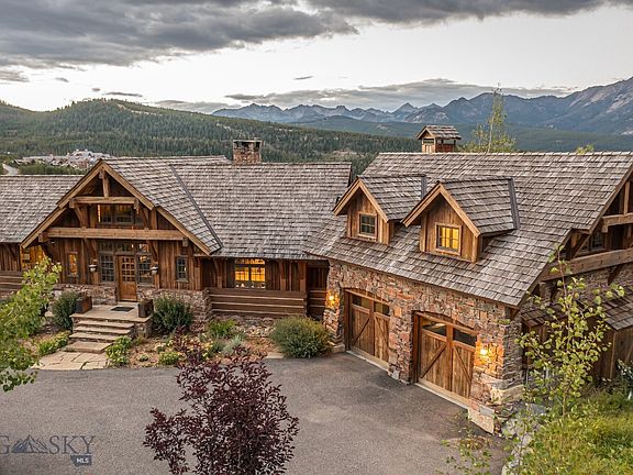 Insane mountain views and sunsets from this furnished 4 bedroom plus room over garage with kitchenette and 1/2 bath. 4 bathrooms, 2 1/2 baths located on quiet cul de sac road. Rustic exterior with newly refurbished interior kitchen and bathrooms. Square beams accent the vaulted ceilings and floor to ceiling stone fireplaces both upstairs and down. Fabulous outdoor fireplace on deck overlooking incredible mountain views and hot tub. Magnificent views from every room! Entertaining home with open floor plan and a lower level family room with wet bar, sauna, floor to ceiling stone fireplace. Room over garage is perfect for overflow family or a 5th bedroom suite or game room as it has a kitchenette. Short drive or walk to the Spanish Peaks Mountain Club clubhouse (swimming pool, hot tub, gym, ski lockers and access, golf pro shop and dining/bar) or Montage Hotel. 10 hole Par 3 is at end of cul de sac. 2 new clubhouses coming! Golf or Ski/Social membership available and membership application and approval is required prior to closing. Sold furnished minus artwork and personal items.