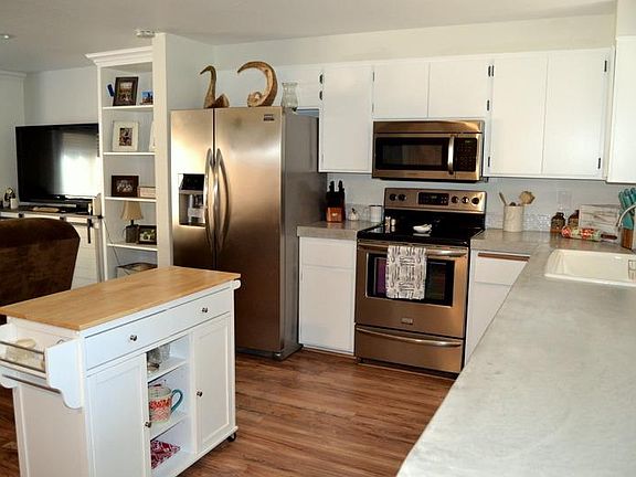 - Interior: Island, Alarm, Ceiling Fan(s), Garage Door Opener