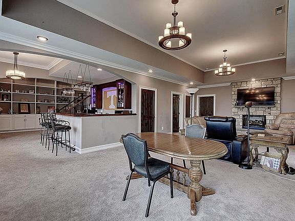 The downstairs also boasts a full wet bar, open entertainment area, with a stone fireplace that goes all the way to the 12' ceilings. When you walk downstairs there is a wall with custom built in cabinetry and shelves. There's a bathroom with a custom tile shower, and a bedroom with a large walk in closet. Through the basement door is an oversized storage space that would make a wonderful workshop or exercise room. Additionally, there are two porches for entertaining with absolute privacy during the summer. There is a wall of glass so you can overlook the lights of the city at night and see the mountains and Lake during the day. The 2 lots the home sits on take up half the cul-de-sac and woods for kids to explore on your own land. All of this is in one of Johnson City's premier subdivisions next to it's premier elementary school. Call your agent for a showing today. Buyer/Buyers Agent to verify all information. Owner/Agent.