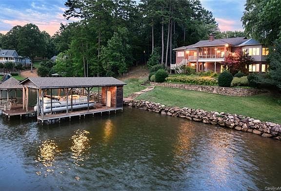 Magnificent custom lake home!! Fabulous open floor plan w/ lots of glass overlooking million dollar view of Lake Tillery! Designed for entertaining, home has large, open great room w/stone fireplace, hand laid flagstone flooring in entry hall, 9' ceilings on main floor, & several areas for dining/enjoying the view! Open kitchen w/center island & breakfast bar, open area for large dining table, & screened porch w/ amazing view of lake, Garrison Bridge, & boathouse. Large master suite on main level w/ 2 separate master bathrooms & large walk-in closet. Total of 3 large bedrooms + 4 bathrooms. Home has enormous family room in basement w/ lots of cabinetry in bar area & beautiful masonry fireplace. Lovely covered patio w/brick floor overlooking lake. Hand laid stone steps down to boathouse. Brand new stone seawall recently installed. Boathouse w/ 1 slip, gazebo, deep water.