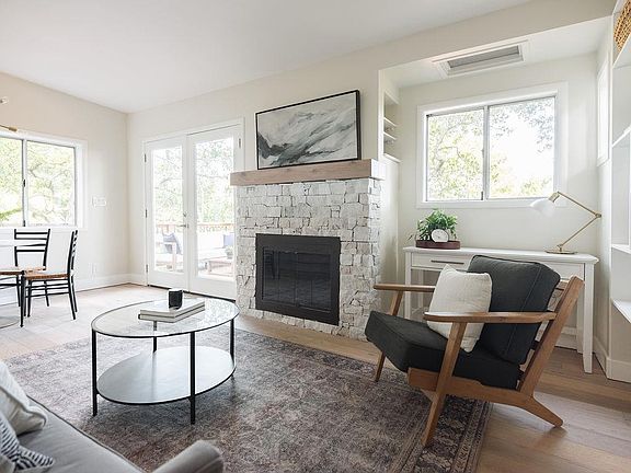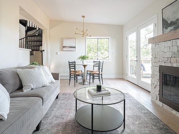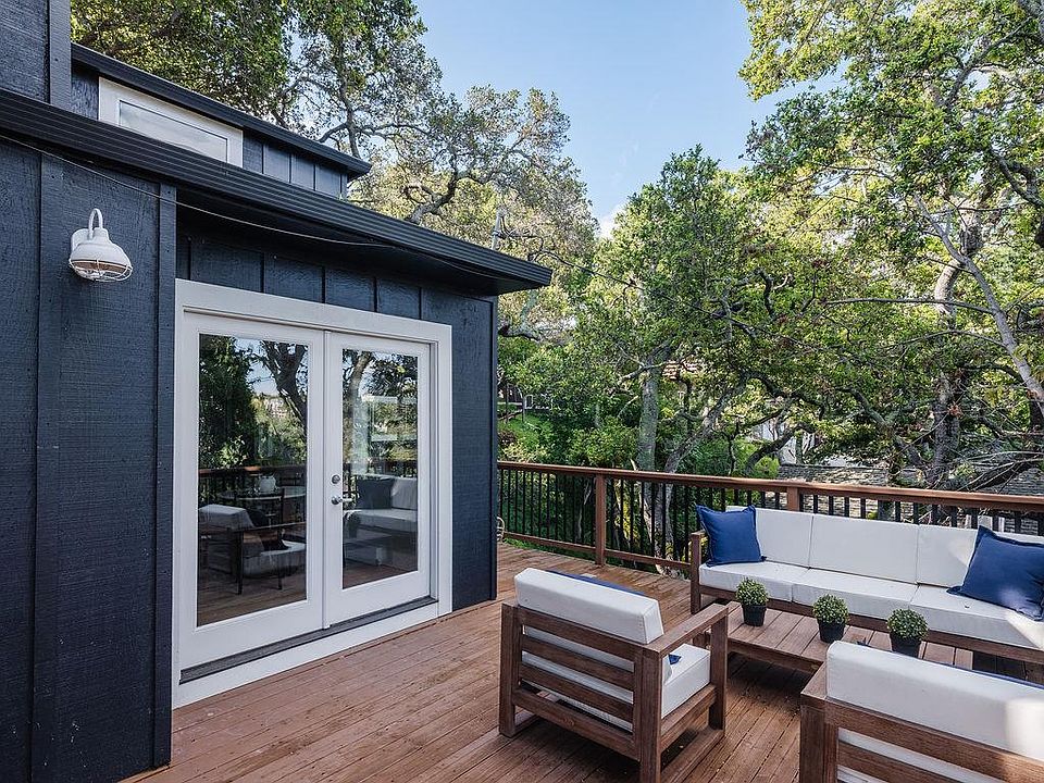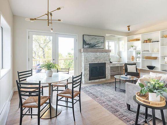 Tastefully remodeled home with designer touches in the San Carlos Hills. This open concept home has brand new European oak hardwood flooring, a gas fireplace, and a dining area with Bay views. The kitchen has stainless steel appliances, generous cabinetry, and newly updated quartz counters with tile backsplash. The spacious main level bedroom is dreamy with its canyon views, wood ceiling, and walk-in closet with new cedar floor, and has easy access to the main bathroom with oversized shower, vanity, and laundry area. The loft and finished basement, with half bathroom, provide an additional 324sf (not included in the sf listed) and each make for a wonderful office, guest room, or bonus space. The private deck off the main living area is perfect for outdoor entertaining amongst the trees. The detached garage provides ~200sf of storage space and the driveway accommodates up to 3 vehicles. Feel like you're away from it all, yet minutes from Laurel Street and award-winning San Carlos schools.