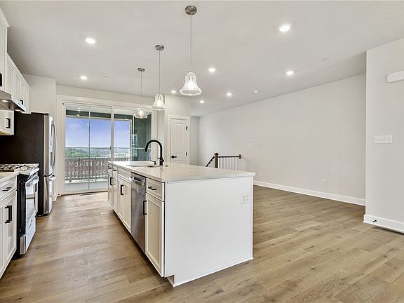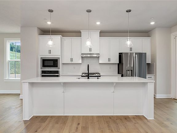 End-unit townhome with so much to love starting the minute you step inside. A chef's kitchen with a 10' eat-at island, quartz countertops, Designer Cabinets with Cushion-Close, Tile backsplash, Stainless Steel Wall Oven, Built-In microwave, a Slide-In gas range vented to the exterior, Dishwasher and a Refrigerator. With this open concept layout, the kitchen flows easily into the great room OR you can walk from the kitchen on to the 12x12 Covered Porch to enjoy your expansive view of the area. The Walkout Basement is Finished and can alternatively be personalized as a Study for telework. Upstairs there are 3 bedrooms, 2 full baths, and a convenient side-by-side laundry closet. The Owner’s Suite has a large walk-in closet and tray ceiling. The Owner's Bathroom features dual vanities and a 5' Standup Shower with a Ceramic Surround & bench seat. The 2-car garage protects your vehicles from the elements. Schedule a tour to visit this home
