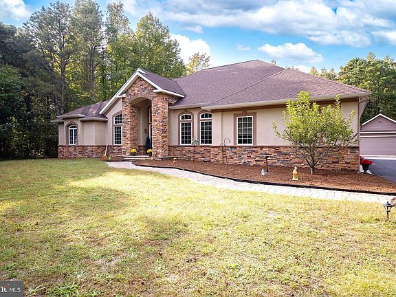 Private Custom-Built Craftsman Rancher Home on 6.20 acres offers endless upgrades and the highest attention to detail and high-end security. This home boasts 4 bedrooms 2.5 baths. Secluded driveway. As you enter you'll be greeted with a large foyer and vaulted ceilings. Dining room, den and half bath which leads to the natural light open concept living room and gourmet kitchen with a breakfast nook that leads out onto the private backyard patio. With an oversized island, stainless appliances, built-in wall oven, trash compactor, ample custom cabinetry and pantry, this kitchen is made for enjoying all of life's small pleasures. Into the large primary suite with tray ceilings, we have an oversized walk-in closet and an ensuite. The ensuite features a custom shower, jetted tub, double sink with counter space. On the “East wing” of the house you will find three good sized bedrooms with a full bath. Entire house is wired with surround sound with custom volume controls. Two car attached garage, along with the oversized 2 car detached garage, gives additional storage while giving you easy access to store all your yard tools, ATVs and more. RV electrical hookup on side of house. Wooded property has ATV/ walking trails for your family to enjoy the wildlife. (room for horses) This property also has the potential of 4 additional buildable lots. Drawings attached, never submitted but gives you an idea of the potential to grow. Don't miss your chance to own this stunning custom build in Egg Harbor Twp. Private Property, preapproved showings only and no drive-ins.