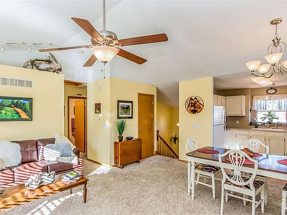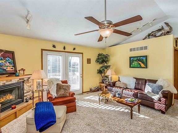 Walk-out zero-lot-line home with professional landscaping, gardens, fenced yard, and outdoor spaces. Features 3 bedrooms, 2 baths, gas fireplace, U-shaped kitchen, dining area, family room, foyer, and laundry room. Abundant outdoor spaces include a deck with access to a covered patio. front and rear garden beds, fenced yard, and a garden shed. Well-maintained home near area amenities. 1-car garage w/ space for 2 cars on driveway.