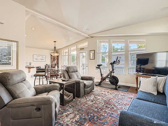 2007 Manufactured Build with 3br, 2 bath in peaceful 55+ community! Features large chef's kitchen, SS appliances, new induction stove that opens to spacious light filled family and dining areas in just over 1400 sqft. New engineered bamboo flooring throughout the living spaces with soft carpeting in the bedrooms. Upgraded window treatments and recessed lighting work together to fill the vaulted ceiling rooms with as little or as much light as desired. Primary bath features double sinks, quartz countertops, walk-in shower and separate soaking tub for easy access from the Primary Bedroom. Large wrap around deck leads to the perfect space to garden adjacent shed/work shop including power and work bench. New Roof and WH installed July 2022!