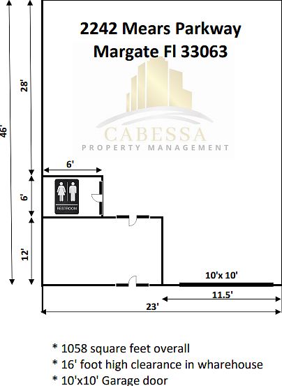 Unit: 46x23 Door: 10x10 16 foot ceiling Moving Cost: 1st month, security deposit, admin and application fee Workshop for RENT Great for dealership, automotive repair, glass tint and many other businesses. Office and private bathroom on the unit. Parking spaces available for rent 24 hours access. * 12' to 16' foot high clearance in warehouse * 10'x10' Garage door * 7x10 Garage door only on unit 1801 and 2100 Water paid by landlord Electricity paid by tenant Each tenant is responsible to have their own garbage container VIRTUAL TOUR ( copy and paste this address in your internet browser)