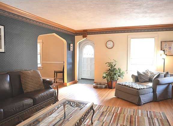 Classic Tudor Brick! Hardwood floors! Crown molding and the 8" baseboards! Great street with mature trees. Delightfull 3 season porch. Big 2 car garage. Archways, butler's door between DR and kit. Kitchen has a nook big enough for a small table. Newer basement bath - the rest of basement is just waiting for your finishing touches. NFC FUNDS AVAILABLE!