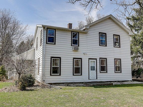 Built in 1880 and renovated in 1980, this Farmhouse Radiates warmth & charm throughout. Large country style sitting porch redone in composite leads to large entry, dining area w/built-in benches & 2 walls of closets. To the left you'll love the HUGE GREAT ROOM addition to the house, w/a wall of bookshelves & NATURAL FP. To the right of the entry is the remodeled kitchen complete w/serving window, & an island/snack bar. 1st floor also has a 1/2 bath, liv.rm. w/built-ins, HOME OFFICE & HOME SCHOOLING AREAS w/cabinets & bookshelves. Upstairs-3 BRS, 2 full BA, walk-in closets, built-ins & tons of storage. Outside you'll enjoy the sitting porch & will love the heated 5 car garage, the additional 2 car garage & the original dairy barn. Come visit - sit for a spell & just take in the COUNT
