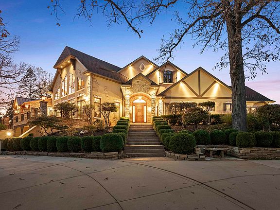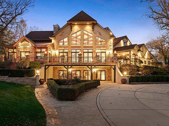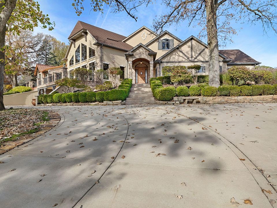 Welcome to this magnificent estate, a perfect blend of luxury & comfort, presented for the first time. Impressive steps lead to breathtaking barreled ceiling entry to begin your tour. Offering an impressive 5 bedrooms & 8 bathrooms, all en suites. This home is designed for both relaxation & entertainment. As you enter, be greeted by the enormous great room/dining room, characterized by soaring vaulted ceilings, architecturally designed beams, & one of four stunning fireplaces that create a warm & inviting atmosphere. Wide plank solid Cherry wood floors are a true show stopper! Adjacent to the great room is a huge kitchen that will delight any chef, equipped with top-of-the-line appliances, generous counter space, and custom cabinetry. Finished laundry room with new washer/dryer, granite counters, & folding island. The main level custom bar with coffered ceilings & fireplace offers a stylish space for hosting gatherings. Main floor master suite provides tranquility & a 3rd fireplace. The sunroom, flooded with natural light, serves as a perfect spot to enjoy morning coffee or unwind with a book while overlooking the expansive grounds. The Estate spans almost 7 acres, complete with a serene pond & a beautifully lighted exterior fountain & masonry fireplace, enhancing the peaceful ambiance. For car enthusiasts or hobbyists, the outbuilding is a standout feature, with a ceiling height that accommodates RVs & space for up to 14 cars. The attached garage boasts heated epoxy floors for added comfort adding one more space for a total of 15. Entertainment options abound with a finished walkout basement that includes a theater room for movie nights, game area, & plenty of gathering space! A huge 2nd level bonus room can be used as an office, playroom, or anything desired. As you tour this park-like setting, enjoy the full court basketball /pickleball court. Location is priceless, feel miles away yet close to all commutes, shopping, schools & restaurants.