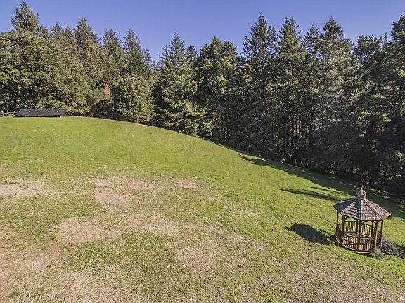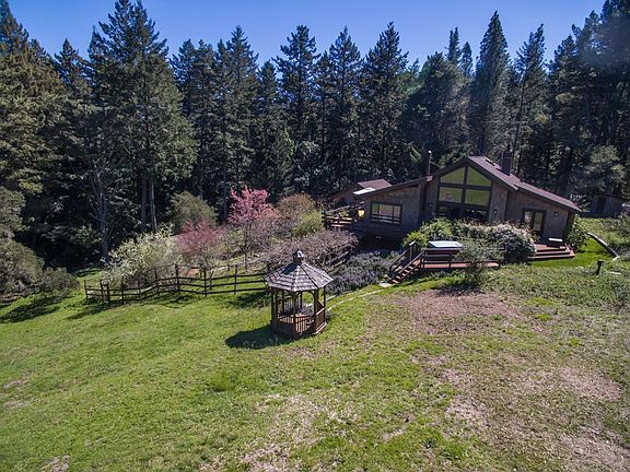 Searching for peace and tranquility in your life? Look no further... Custom Craftsman with open contemporary flare. Sitting on 7.3 acres of sunny meadow ringed by heritage Redwoods the property invites you in. These original owners built in 1985. 2040 sq. feet with 2 beds 2.5 baths, loft office and flowing floor plan. Soaring wall facing the meadow features dramatic windows taking in the natural setting and wildlife. Detached guesthouse/office. Ocean views from a unique platform deck. Solar electric. 20 gpm well allows for robust gardening or a vineyard. Excellent trail access. This is a one-of-a-kind property just minuts to the heart of the Bay Area.