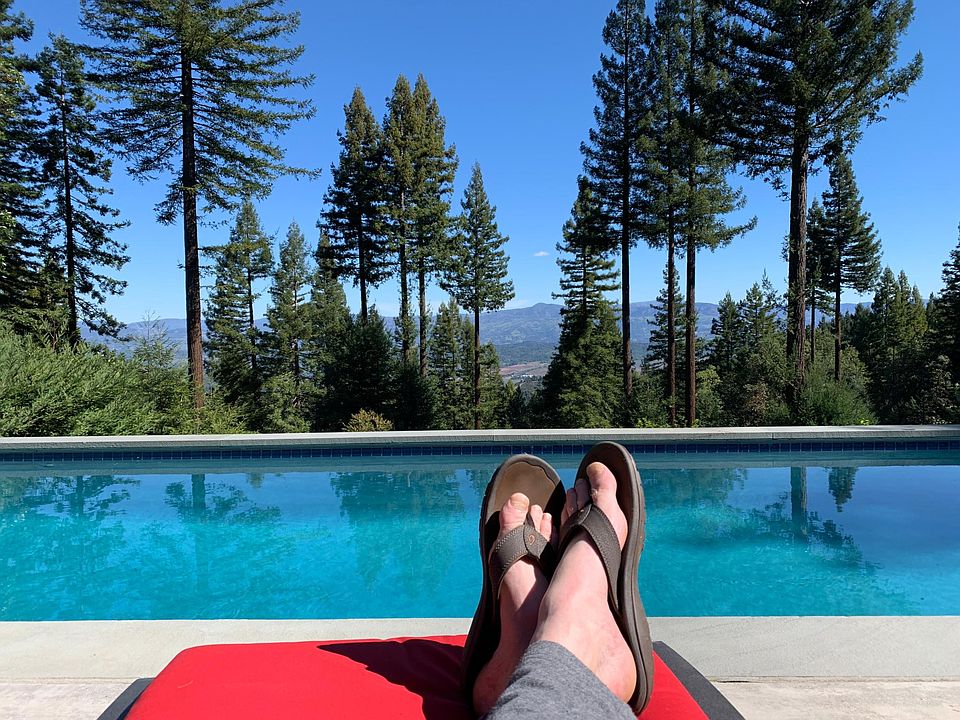 Gorgeous brand new 2 Bedroom, 2 (en-suite) Bathroom Studio Guesthouse available. Nestled in 10 acres surrounded by thousands of acres of stunning NorCal redwoods, this 800sqft Studio is prefect for friends, couples and small families. You have full access to the main house, which includes a generous country kitchen, a heated 50ft swimming pool and extensive exterior deck area. Total privacy and fantastic views are guaranteed here with this highest quality off-grid solar and well water system providing all amenities to the house. The Studio was build in 2019 and is built with the highest quality fittings and furniture throughout. Two identical rooms each with en-suite bathrooms with showers allow for privacy or can be opened out to offer one large shared space. Designed with comfort and serenity this Studio apartment is triple insulated and offers both AC and heating throughout. Each room comes with brand new Queen Beds and both offer a separate lounge area that is furnished with both a large white felt couch and a flexible desk workspace. The main house itself is also recently constructed and boasts high vaulted ceilings throughout, mezzanine lounge area and open plan kitchen give a tremendous sense of spaciousness. All finished with wood paneling above and bamboo flooring throughout. The main living room boasts double-height vaulted ceiling, over-sized leather couches, 12 person farmhouse dining table and supplied with Sonos sound systems throughout the house. Duration of stay and price negotiable. Ideal candidates want the mountain top beauty, serenity and seclusion. Studio is brand new and would suit someone who likes the comfort of a high quality space but surrounded by nature. As the Studio has no kitchen or cooking facilities so you have the full run of the main house; kitchen and the lounge and dining areas. If you want a gorgeous place you can have retreat like privacy but also enjoy sharing the facilities in the main house, then this is the place for you. Although the house was not affected by the recent fires, the mountain itself was so please come take a look before reserving.