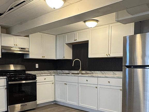 3 BR, 1 bath apartment with vinyl plank flooring throughout. Also includes an updated kitchen with a stove, fridge, central AC, W/D hookups in the unit, and street parking. Updated bathroom. Tenant pays monthly water, electric, and gas fees. Basement unit.
