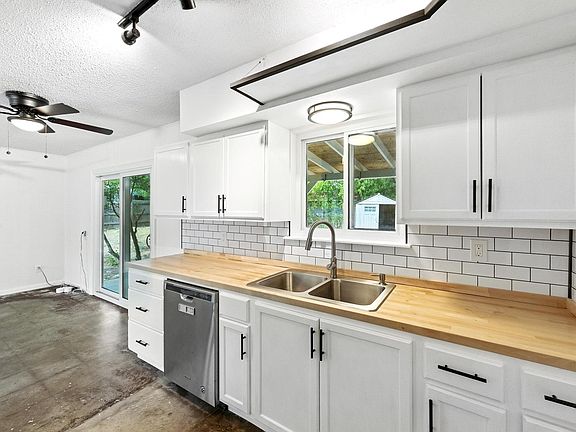 Welcome to this beautifully updated two-story home on a cul-de-sac in the heart of Austin’s lively 78741 zip code. Blending modern touches with a versatile layout, this property offers a fantastic opportunity for those seeking a move-in-ready space with recent improvements. As you enter, you're greeted by a bright and airy front living room featuring warm wood-style flooring and a large picture window that fills the space with natural light. The entryway showcases unique terrazzo-style tile, leading to the main living areas and a staircase with classic wrought-iron details. The heart of the home is the open-concept family room and kitchen, which features stylish and durable concrete floors—an ideal canvas for your personal design touch. The space is anchored by a fully renovated kitchen that will impress any home chef. It includes new white shaker cabinets, butcher block countertops, a timeless subway tile backsplash, and stainless steel appliances. A new sliding glass door provides easy access to the large backyard, seamlessly connecting indoor and outdoor living. This home has been thoughtfully and extensively upgraded to offer modern comfort and peace of mind. The significant improvements include a fully renovated kitchen and completely updated guest and master bathrooms, new windows, and siding. A fresh coat of interior paint completes the move-in-ready experience, giving the entire space a bright and clean feel. Conveniently located with easy access to all that Austin offers, from downtown entertainment to local parks and dining, this home is a must-see. Don't miss your chance to own a property where major updates have already been completed. Schedule your private tour today!