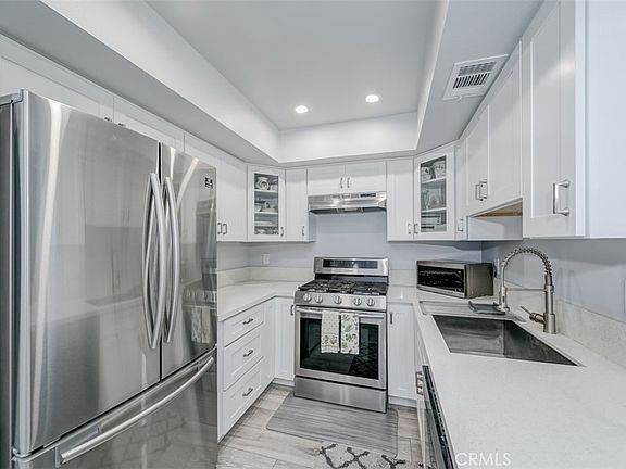 Property is located in the most desirable Fullerton area. Adorable two story condominium with spacious 2 bedroom and 2 bathroom. This home has been totally remodeled with premium materials with the finest craftsmanship. Custom laminated wood flooring throughout the home. The kitchen with custom quartz kitchen countertop, white cabinets, and stainless steel appliances. The master bedroom with upgraded closet organizer, mirrored closet doors, crown molding, 2nd bedroom has a built-in wardrobe, and walk-in enclosure shower. The home has a spacious covered patio area that comes with additional storage room. Good for entertaining family and guests. Assigned parking space along with guest parking. Custom Refrigerator and Washer & Dryer included. Conveniently located the hiking/biking trails, golf course, parks, and award winning schools(Sunset Lane Elementary, Parks Junior High and open enrollment for High School). HOA includes water, trash, insurance, and outside maintenance. Great for investment. Don't miss this Beauty!
