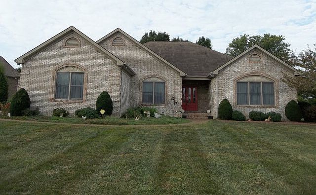 BEAUTIFUL ONE LEVEL CUSTOM BUILT BRICK HOME WITH 9 FT. CEILINGS, CORNER LOT,IN FOX CHASE SUBDIVISION. Beautifully landscaped, 3br, 2 1/2 ba 3 car (nearly 1,000 sq. ft.) attached garages. Formal dining room, Crown moulding and Cherry kitchen cabinets. Walk-in closets in all three bedrooms,6 panel solid cherry wood doors throughout,gas log fireplace in the great room,with separate utility room. Just 2 minutes from the new hospital and 5 minutes from Hwy 54 shopping, but has a country setting. You owe it to yourself to look at this one before you buy, you will be glad you did!