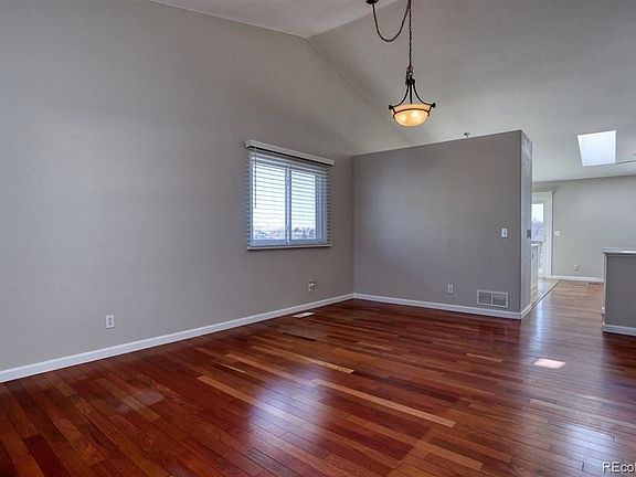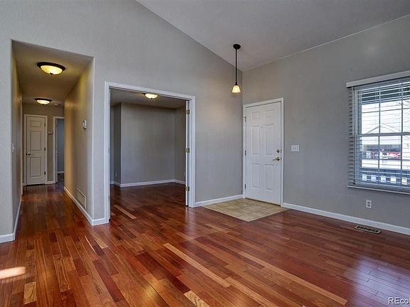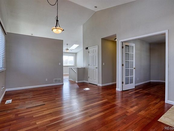 Welcome Home to Harvest Ridge! This charming ranch style home features 3 bedrooms & 2 full baths with an open floor plan in this immaculately-maintained home. Upon entry you are greeted by gleaming rich Brazilian cherry wood floors. The "heart of the home" family room & kitchen provides amazing natural light! The kitchen features white raised panel cabinets, undermount lighting with an island for storage & prep; perfect size for that hanging pot rack! Bright & beautiful master bedroom has a spacious walk-in closet. The master bath provides space for a double vanity & has a separate commode. The outdoor living space offers park views and nature's trail with walking path to soak in the sun and enjoy those Colorado sunsets! The deck features a remotely operated Sunsetter Pro awning with built in lighting & wind sensors. The back yard is ready for your personal touches & BBQ's! There is space to grow in the unfinished walk out basement, along with so many detailed "touches" in this home from the solar panels to reduce your carbon footprint, private front porch to the motion sensor lighting & digital timer bathroom fans; what's not to love! This beautiful home shows prideful homeownership with newer Alside swing & clean windows throughout the main level, new window wells, newer roof, newer 5" gutters & downspouts, newer fence with gate to access the walking trail, freshly painted & move-in ready! Less than 2 1/2 miles away from TWO RTD light-rail train stations, shopping, restaurants, schools and I-25. Check out the 3-D Tour and book your showing!
