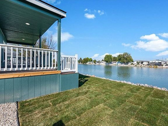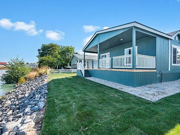 Join us and discover this brand new 1,512 sq ft new manufactured home right on the lake at Blue Valley MHP. This home features an 8ft covered front porch with a sliding glass door facing the lake, 3 bedrooms, 2 baths, a living room, utility room and kitchen. Also included are three car parking, heat pump/AC, outdoor shed painted to match, vinyl fencing and a fully landscaped low maintenance yard with underground irrigation and automatic timers. The home and community are perfect for someone selling their home, looking to downsize and lower their maintenance in a quiet community. We invite you to join us and explore this great opportunity and all of the amenities that come with it. By appointment only - please reach out!