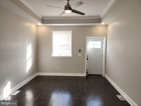 Located within walking distance to the World Famous Hopkins Hospital, numerous renovations as well as the pristine Collington square park comes this large light filled Gem. This Spacious home with tall tray ceilings,recessed lights and new dark cherrywood floors will impress all who enter. The Modern style kitchen with all new stainless steel appliances and ample cabinets and countertop is a focal point because it is in a aloft position over the living and dining area. As you walk to the upper level, exposed brick signals that more comfort is near. Each Bedroom is sizeable with good closet space(One has its own Bathroom) , and for convenience theres a Bathroom and quaint laundry area nestled in the hallway. The half bath on the 1st level, good sized storage basement and breakfast nook makes this home the one to buy.