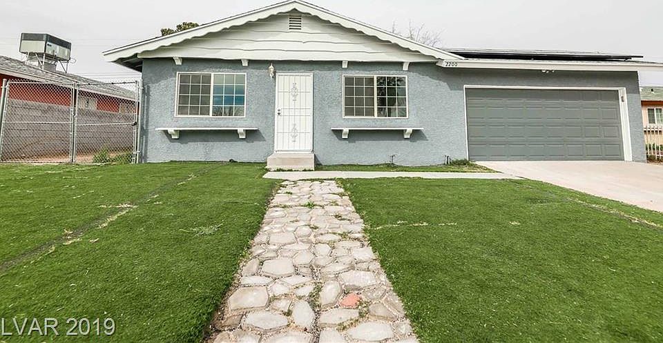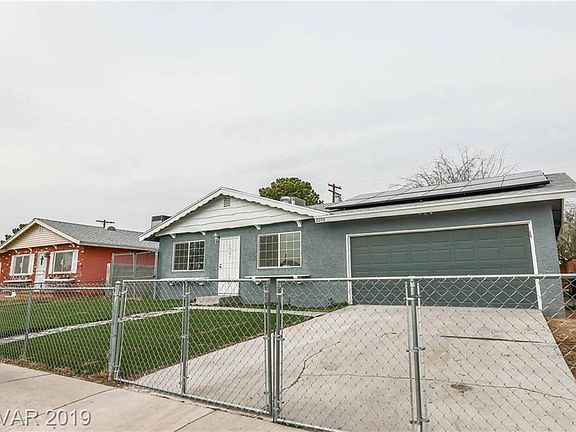 EXCELLENT OPPORTUNITY TO OWN A 5 BED 2 BATH HOME WITH 2 CAR GARAGE AND INCLUDED SOLAR PANELS ON THE EAST SIDE OF VEGAS!! SAY WHAT! UNDER 220!WALK INTO THIS CUTE HOME WITH GREY LAMINATE FLOORING AND NEW BASE BOARD, NEW PAINT , NEW CEILING FANS, WHITE MODERN KITCHEN WITH WHITE QUARTZ AND STAINLESS STEEL APPLIANCES,HEXAGON BACK SPLASH, TILE IN ALL WET AREAS, NEW TEXTURE, NEWER ROOF, NEWER A/C, NEWER WATER HEATER! WHERE DO I SIGN! DON'T MISS OUT!