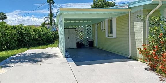 3-bedroom 1.5 Baths single family home with carport and Huge Driveway on 7,500sq.ft. lot in leafy, secluded neighborhood ¾-mile from Downtown Naples. Gulf beaches, theaters, restaurants, Gordon River Greenway, Tin City, Gulf access from Naples Bay. Den has sliding glass doors to screened porch and can convert to 4th bedroom. Hurricane-code skylight and 2 Solar tubes. Windows on all sides of house with blinds throughout. Locking Metal Hurricane Accordion Shutters all-around and clear impact-resistant panels for living room windows. Thick eight-foot Ficus shrubbery surround 3 sides of property and 6 ft. fence in back provide all-around privacy. Programmable irrigation system. Property has 7 palm trees, 2 fruit-bearing Mango trees and tangerine trees. Roof resurfaced in 2020, 1½-yr old LG refrigerator, 1-yr old UV light in HVAC, 2-yr old 40-gal water heater, indoor laundry room. NO HOA. ALL AGES!