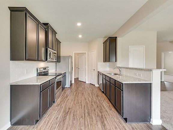 The Cypress plan is a two story, 4 bedroom and 2.5 bath home featuring over $10,000 in upgrades! Upgrades include energy efficient appliances, granite counter-tops, designer wood cabinets, brushed nickel hardware and an attached two car garage. The Cypress showcases a downstairs master suite complete with dual sinks, a huge walk in closet and classic bay windows. The open layout, fit for entertaining, highlights the Cypress plan and he 3 additional bedrooms upstairs offer plenty of space for family and guests. The exterior of this home is beautiful with a covered entryway, front yard landscaping and a fully fenced backyard.