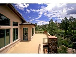 This magnificent Adams designed 2 story home on Butte creek has views of the 18th fairway of Hassayampa Country Club and Aspen creeks moss covered boulders. Jenn-Air appliances in kitchen, laundry, and personal laundry in Master suite. A glassed elevator, wine cellar, 2 fireplaces, media room, beautiful cabinetry and finished carpentry throughout. Natures scenery out every window. Office could be 4th bedroom. ECD Dec. 2007.