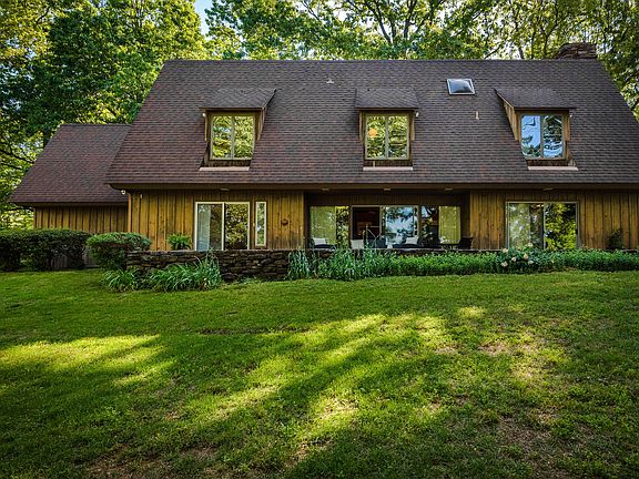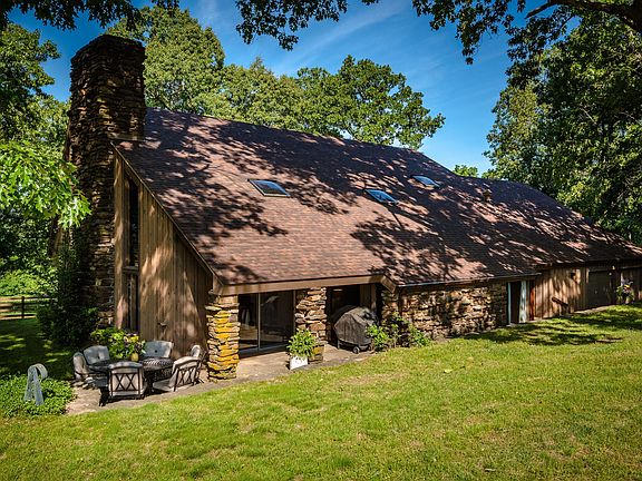 RARE OPPORTUNITY to own a beautiful mini-farm in the Ozarks just minutes from Harrison. This custom built home with incredible views is being offered on a private 14 acre parcel with a beautiful pond. It comes with a 32 x 50 metal utility barn with concrete floors, pull-through overhead doors and a 30 x 11 covered side shed. The home contains soaring ceilings and oversized windows give almost every room in the house a beautiful view of the surrounding acreage. Built in a Frank Lloyd Wright style with redwood paneling, large beams and natural stone floors; the home's architectural design offers an openness that blends with its natural setting. The home has a stunning two-story rock f/p adding the ambiance of a wood burning fire to both the study downstairs and the master bedroom.
