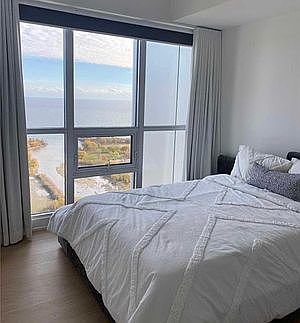 Fantastic opportunity to live in the desirable Humber Bay Lakefront Community in Mimico in a one bedroom condo with everything included. Landlord will pay for all the utilities and even your internet! This beautiful unit comes partly finished with stunning views of Lake Ontario from the 28th floor. A single parking spot plus storage locker is available for your use. This building comes with 5 star amenities that you will certainly enjoy with your family and friends. Located conveniently just a short drive from downtown Toronto, with public transit available outside the building, plus a short distance from the GO Train. You will love the near by parks and trails plus shops and restaurants right outside the front doors including Starbucks, LCBO and Metro.Extras: All utilities included in the lease plus Bell Internet. Tenant only responsible for tenant insurance.Inclusions: All kitchen appliances, washer & dryer, all window coverings & light fixtures, queen bed with mattress, dining table & 4 chairs, sofa, patio table & chairs.