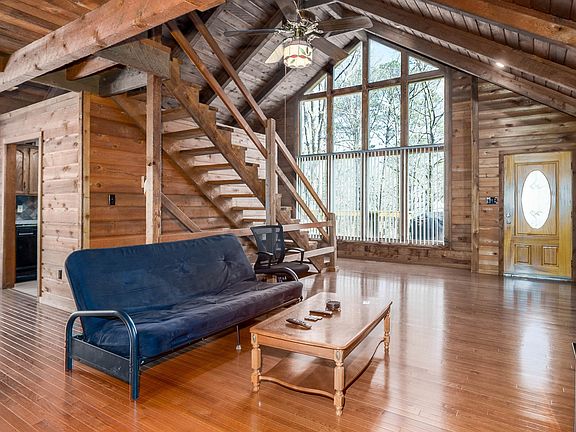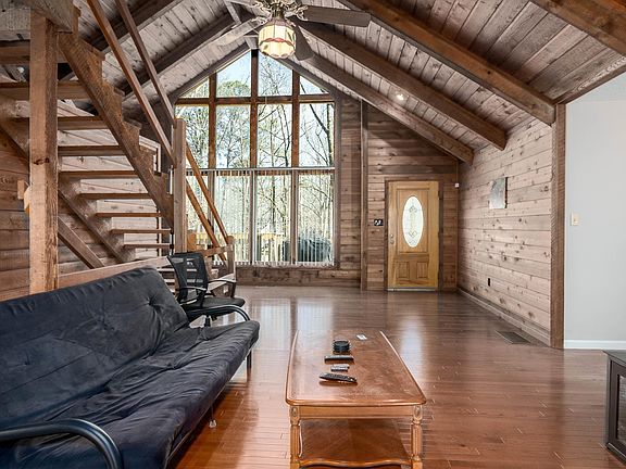 Lake Living only minutes from town. This one of a kind private "cabin" with a view just hit the market and won't last long. Vaulted Ceilings...Original Nickel Gap Wood Paneling...Floor to Ceiling Windows...Hardwood Floors just to m=name a few of the unique details. The open floor plan with a rustic loft is perfect for the cozy nights in front of the rock fireplace. Enjoy the killer view from the floor to ceiling windows. BRAND NEW REAL HARDWOOD FLOORS. No fake laminate floors here! Bedrooms are all spacious with lots of closet space. Bathrooms are large and clean. Full basement has so much potential. 2 Car Garage. HUGE back deck. Lots and lots of privacy. Did I mention the brand new roof?! Come and see - This is the one for you!