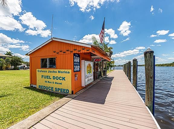 Auctions: 12:00 PM 7/25/2019 Marina with wet and dry storage, gas/diesel tank, mechanic shop, office and living space. Calusa Jack's Marina is a family and pet-friendly grassy paradise along the Caloosahatchee River accommodating wet and dry storage customers. This marina sells 38,000-40,000 gallons per year of ethanol-free REC-90 gasoline and off-road diesel fuel. INCLUDED WITH SALE OF CALUSA JACK'S MARINA - Taylor Marina Forklift (1996): Cummins 6-cylinder diesel engine; foam filled tires; 2 stage stack mast; 38' positive lift; 10' negative lift; slide shifting fork positioner; 19' boat forks, capacity 15,000 lbs. - Above ground fuel tank: 4,000 total gallons. 2,500 diesel gallons / 1,500 gasoline gallons - Wet storage slips: 8 total slips. 6 slips individually metered for electricity and charged to customers - Dry storage slips: 24± dry storage slips depending on vessel size - Caretakers home: 1,800± sq. ft. total upstairs living space (3 bedroom, 2 bath, 228 sq. ft. glassed-in porch, 190 sq. ft. screened-in porch). Includes central A/C unit which was installed in 2016 - 800 sq. ft. mechanic shop and covered work area - 525± sq. ft. office space - 399± sq. ft. lockable storage room - (3) Storage sheds (metal/wood) - (2) public restrooms with (1) public shower - 175' front dock (Composite deck boards installed and understructure refurbished in 2015) - (2) transient power pedestals, each with (1) 30 amp and (1) 50 amp hookup - Fuel and snack shack - Large shop equipment (Lower lift units, engine hoists, motor stands, boat stands, and more) Note: A Buyer's Premium (Buyer's Fee in WI) will apply for this property. Please see Terms of Sale for details. Broker Licenses: FL Jeffrey Ashby RE LIC 3421110; Williams & Williams Mrktg Srvcs, Inc. RE LIC 1032049; Thomas Barnes AUC LIC AU3383
