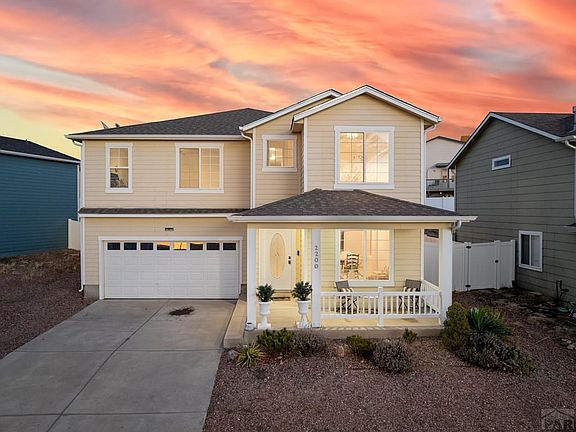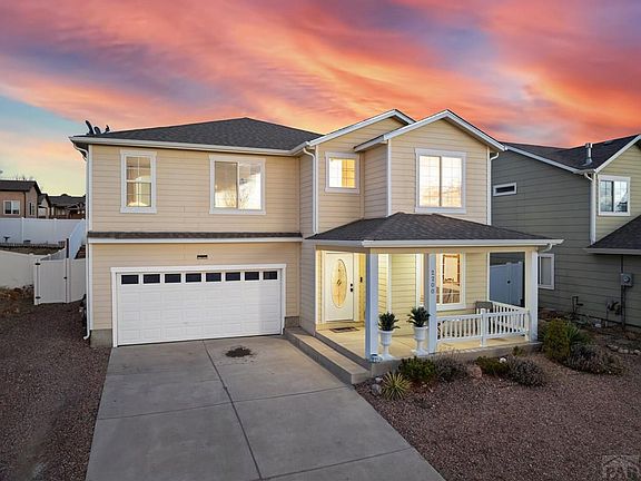 Not your typical 2-story—this one checks all the boxes! Designed for today's open-concept lifestyle, the main family room, dining area, living room, and kitchen flow seamlessly together for a bright, spacious feel. The kitchen shines with fresh modern finishes, stylish goldish-bronze hardware, and a warm contemporary vibe—perfect for entertaining or quiet nights in. Upstairs, a versatile loft offers a cozy reading nook, study, or play area, while the upper bedrooms capture beautiful mountain views. The private master retreat features a spa-style 5-piece bath and generous walk-in closet. A fully landscaped yard, fenced backyard, and two-car garage complete the easy-living design. With 4 bedrooms, 3 bathrooms, and 2,606 sq ft of thoughtfully designed space, this home is move-in ready! Quick access to I-25 makes commuting a breeze, and you're minutes from Pueblo's best shopping, parks, breweries, and vibrant local events. Outdoor lovers will adore Pueblo Reservoir's boating, trails, and beaches, while downtown's Historic Arkansas Riverwalk offers live music, galleries, cafes, and festivals all year long. Plus, nearby schools, healthcare facilities, and recreation centers add extra convenience to everyday life. Enjoy vibrant sunsets, mild winters, and a welcoming small-town atmosphere with big-city perks. This is more than a home—it's your gateway to an incredible Colorado lifestyle. See it today and start living your best life!