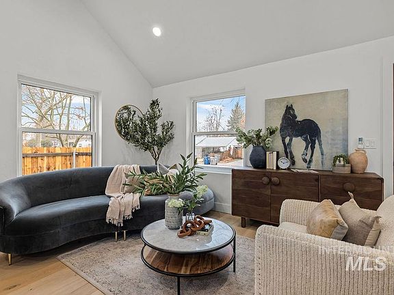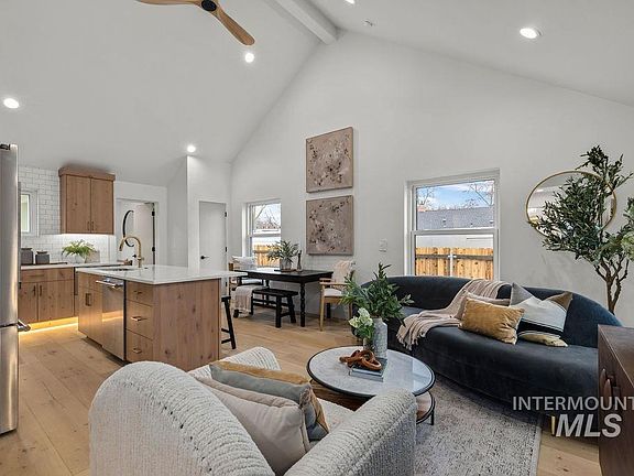 This stunning, fully renovated North End gem blends sophisticated design with thoughtful functionality on an oversized corner lot! Vaulted ceilings and abundant light welcome you into the fresh, open layout. The chef’s kitchen is a showstopper, featuring high-end Thermador appliances, a gas range, pot filler, soft-close solid Alderwood cabinetry, under-cabinet lighting, tile backsplash, and pantry. The kitchen and bathrooms boast luxurious Quartz countertops, and mini-splits in each room allow for individual temperature control. Wide-planked wood flooring, new carpet and tile throughout complement the brand-new windows, lighting fixtures, and fresh interior and exterior paint. The main level primary suite offers a spa-like bathroom and walk-in closet. Plenty of room to relax in the lower level bonus room, two bedrooms/flex rooms/office and bathroom. Additional features include a new full perimeter wood fence, brand-new insulated two-car garage with two 50-amp EV chargers and RV/Boat parking. Lots of upgrades!