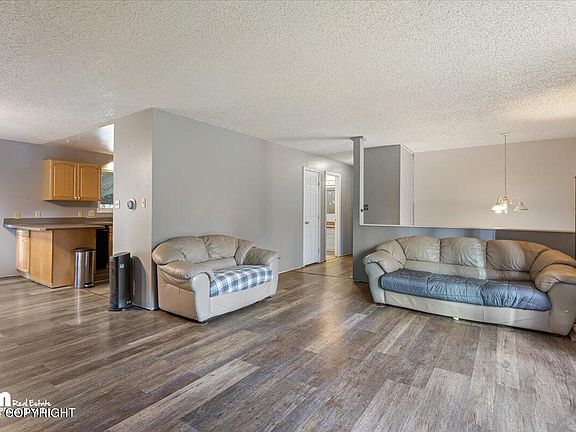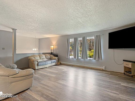This spacious home on a private 1-acre lot just outside Wasilla city limits offers plenty of room for the entire family. Featuring large rooms throughout, the lower level boasts a huge family room, while the upper-level living room is warmed by a cozy fireplace. Step outside to enjoy a massive 500+ sq. ft. covered deck, perfect for outdoor gatherings.The property also includes a fully fenced backyard, providing privacy and space for outdoor activities along with a large storage shed for extra convenience. Conveniently located close to town and all amenities, it offers an excellent commute location. This home is a must-see for families in need of extra space! Buyer to verify all information.