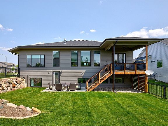 Better than new walk-out ranch has over 3,000 sq ft of finished living space! Step inside to this beautifully designed home with so many custom upgrades. The great room has a floor to ceiling stone fireplace & oversized windows overlooking the beautifully landscaped fenced backyard. Beautiful kitchen w/ quartz countertops, large island, pull out cabinet shelves, SS appliances, gas range, pantry w/ custom shelves. Open the sliding door to a covered deck & stairs that lead to an extended patio. Master suite connects to the luxury bathroom w/ quartz topped dbl vanity, large walk-in shower & soaker tub, custom closet is conveniently connected to the laundry room. Two additional bdrms & full-sized bath on the main floor. Finished LL offers a large living area, wet bar w/ full size fridge, 2 additional bdrms, full bath, huge storage space w/ custom cabinets, & a door leading to back patio. Irrigation system installed. Johnston schools! All information obtained from public and seller records.