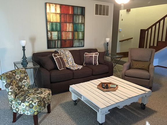 This duplex has been completely remodeled and comes fully furnished with stylish furnishings as well as dishes, pots and pans, silverware, towels and sheets, as well as many other items. The bedroom upstairs is a loft style and includes a king bed with TV and bathroom and 2 walk in closets. The downstairs living room has a queen sleeper sofa and TV. The kitchen also has a small desk as well as breakfast bar. The unit has an attached 2 car garage and a great deck out back. The location is excellent as it is minutes from Penn Square Mall and access to I-44. Water/sewage/trash included. Renter pays electric, gas and cable/internet. Minimum lease is one month up to 24 months.